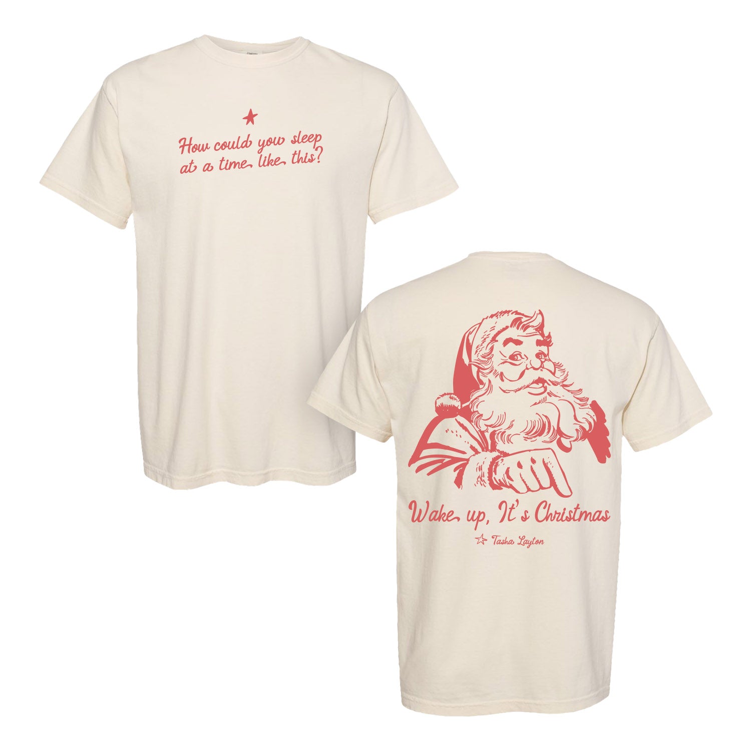 Unisex tee. Ivory Tee with Red writing. Front and back print